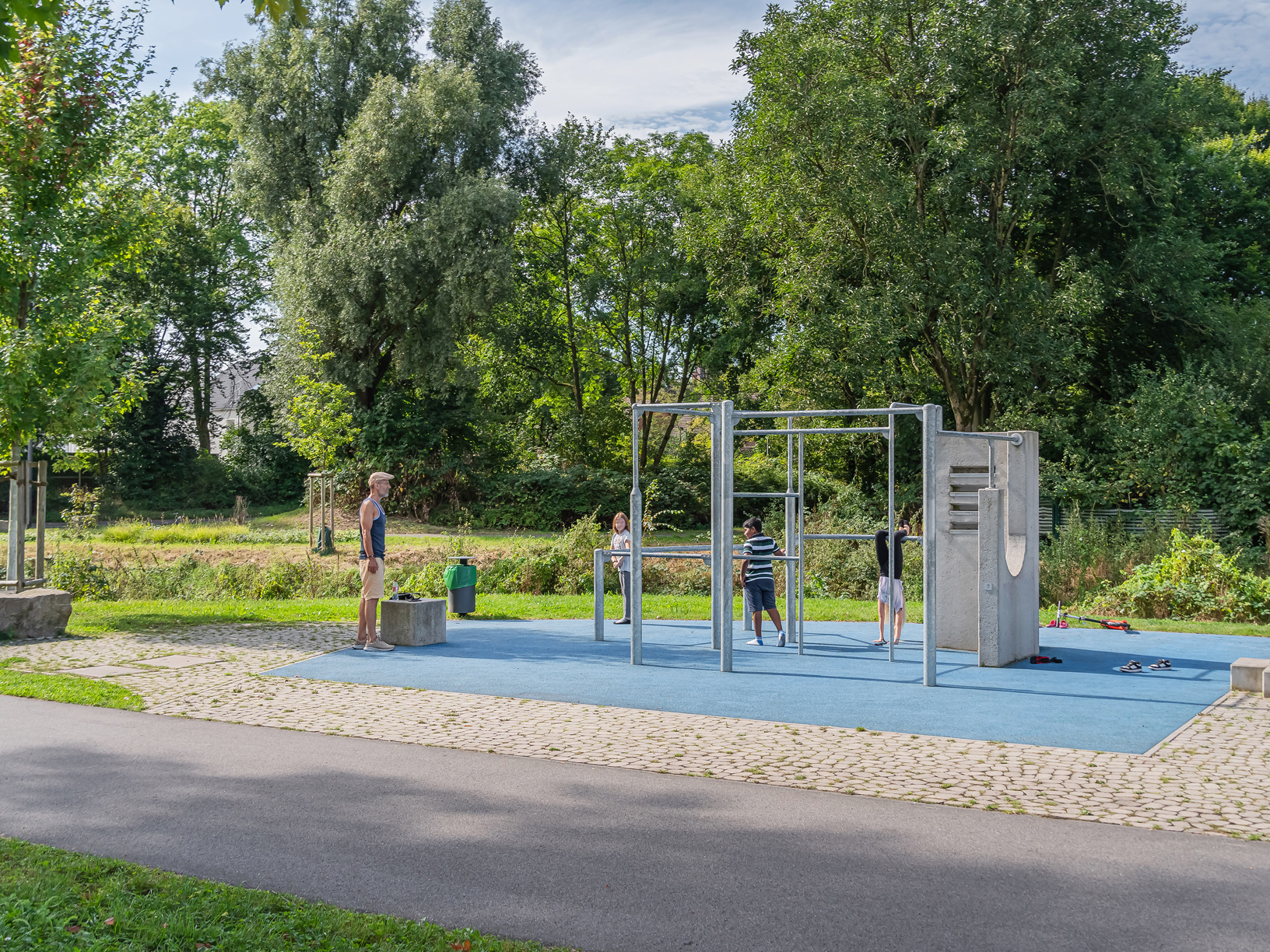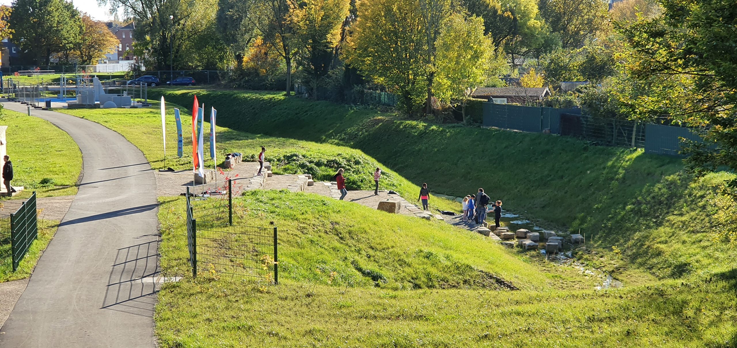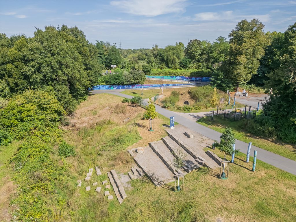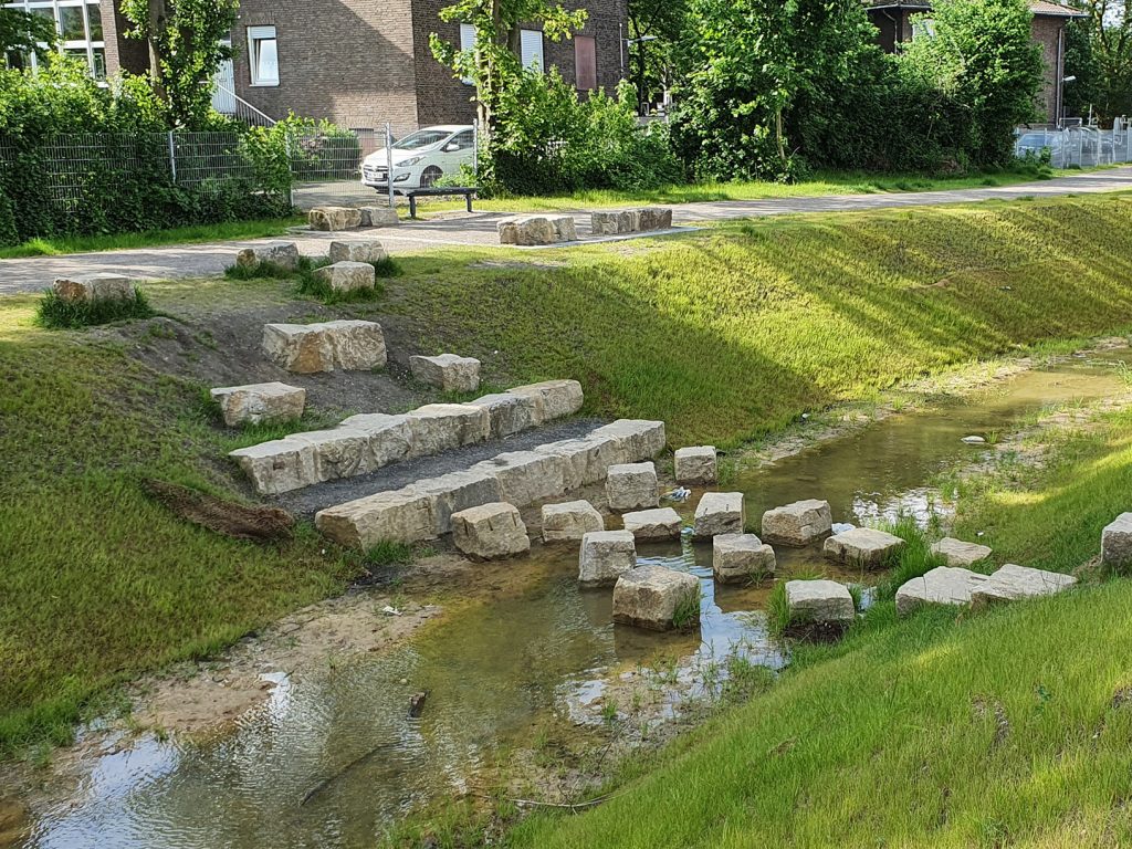 in Essen zwischen 2015 und 2022 zu einem Grünzug mit offengelegtem Bachlauf und gewässerbegleitenden Aufenthalts- und Spielorten auf einer Länge von etwa 1,1 km zwischen der touristischen Radwegetrasse und dem S-Bahnhof Katernberg.